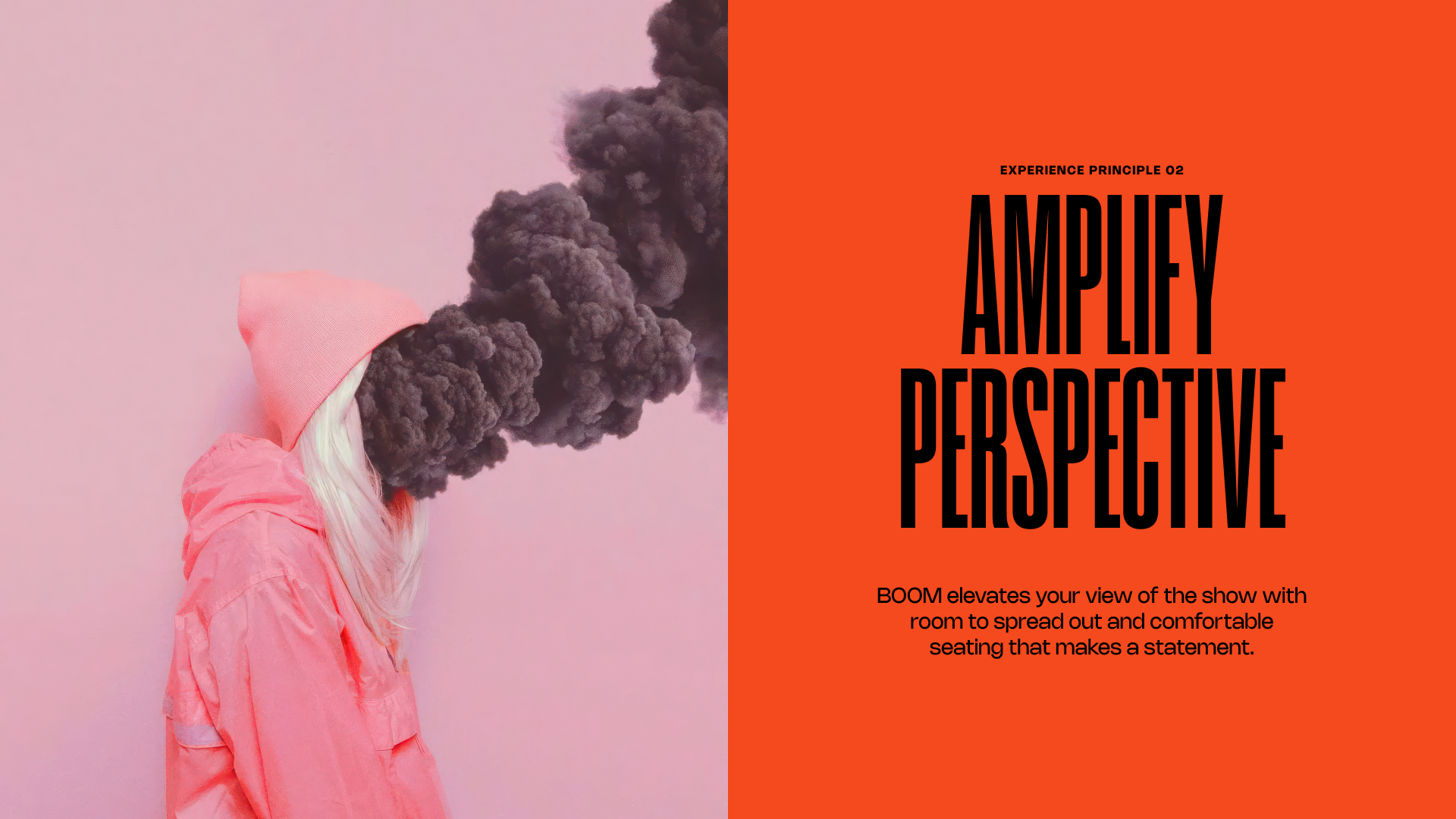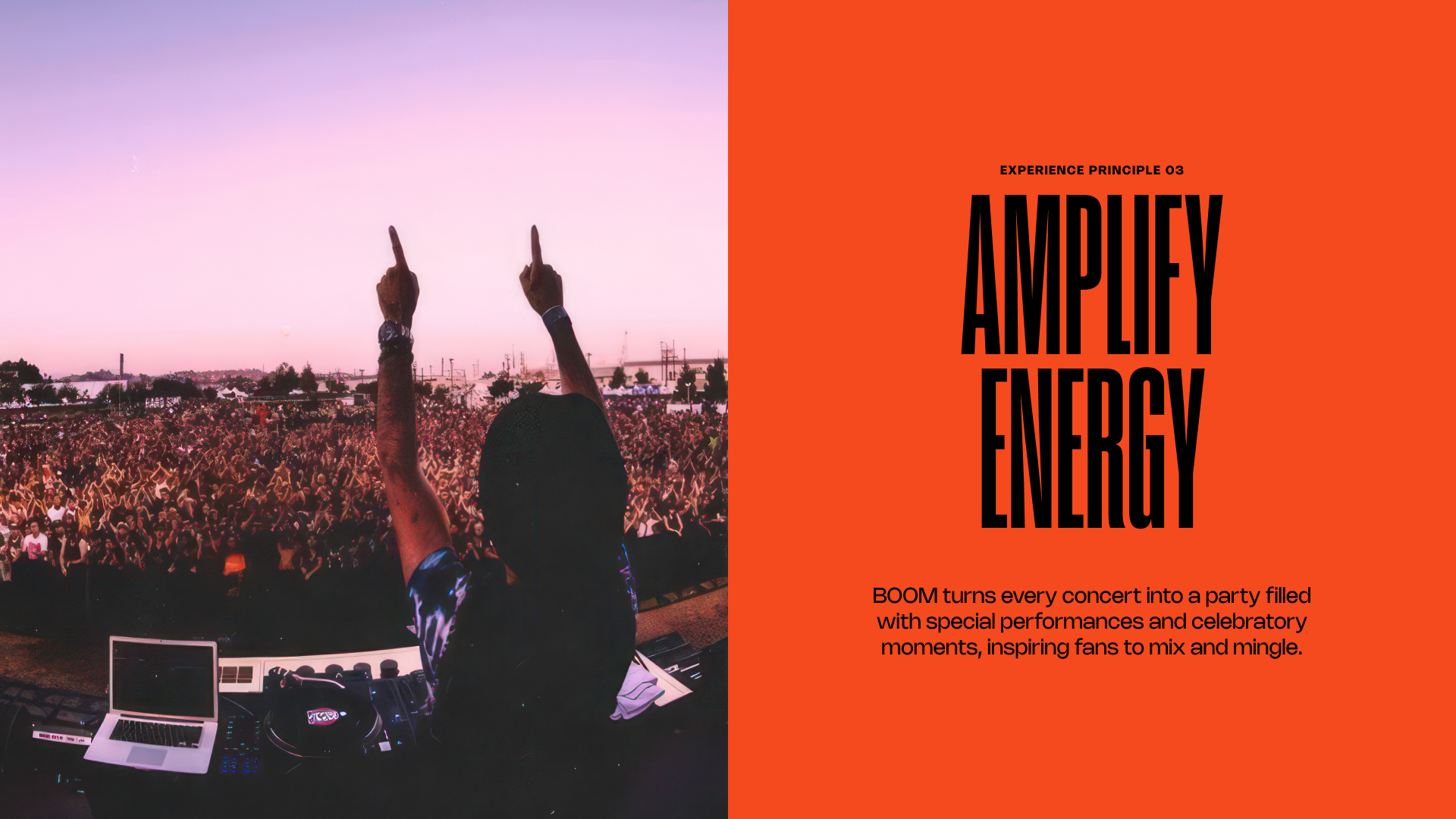 Tasked with creating a VIP experience that felt at home among Live Nation’s many amphitheaters, we were given the name BOOM. That inspired us to crank the VIP treatment to full blast and go BOOM with an amplified concert experience that’s bigger, bolder, and more fun.